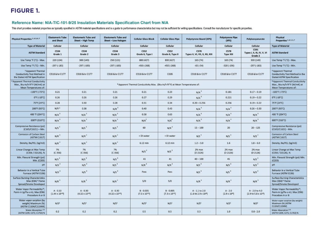 That is where NIA’s Insulation Materials Specification Chart comes in. This invaluable, unbiased tool consolidates the physical and material properties of various insulation