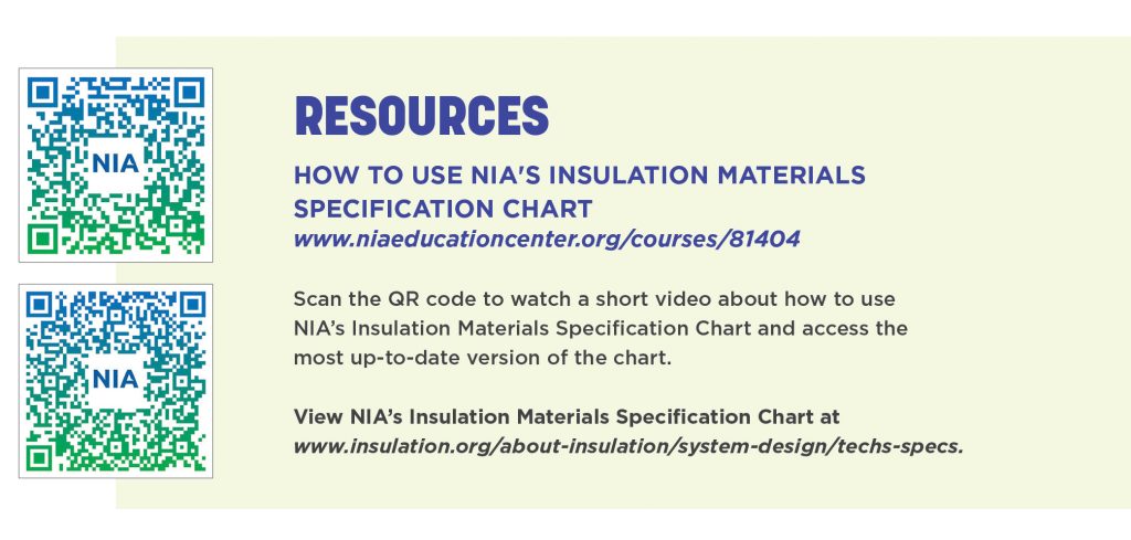 For further information about NIA’s Spec Chart or other resources, please visit www.insulation.org or www.niaeducationcenter.org, or reach out to training@insulation.org.