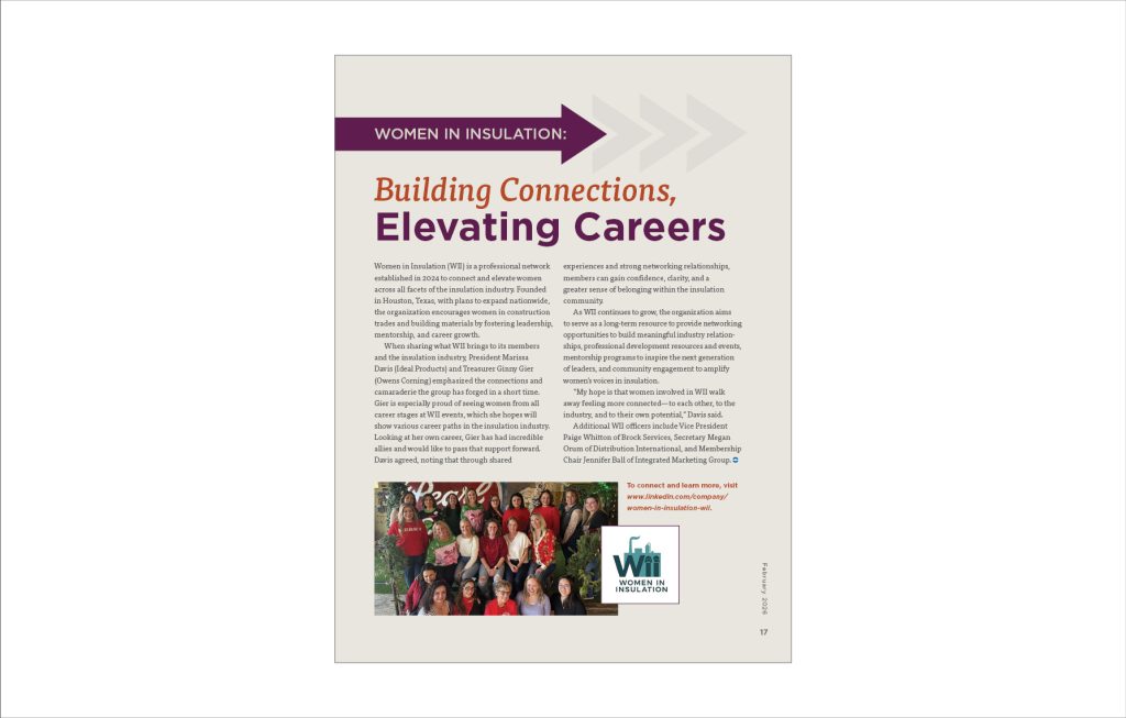 As WII continues to grow, the organization aims to serve as a long-term resource to provide networking opportunities to build meaningful industry relationships, professional development resources and events, mentorship programs to inspire the next generation of leaders, and community engagement to amplify women’s voices in insulation.